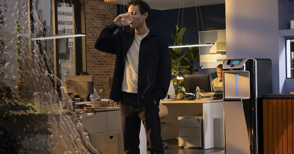 Vanndispenseren har fullfarge LCD-skjerm, tydelig statusindikator og fem valgfrie alternativer som gir en intuitiv og brukervennlig opplevelse. Det store tappeområdet og den innbydende skjermen gjør det enkelt å velge blant opptil fem typer vann med ulike temperaturer – også med kullsyre.