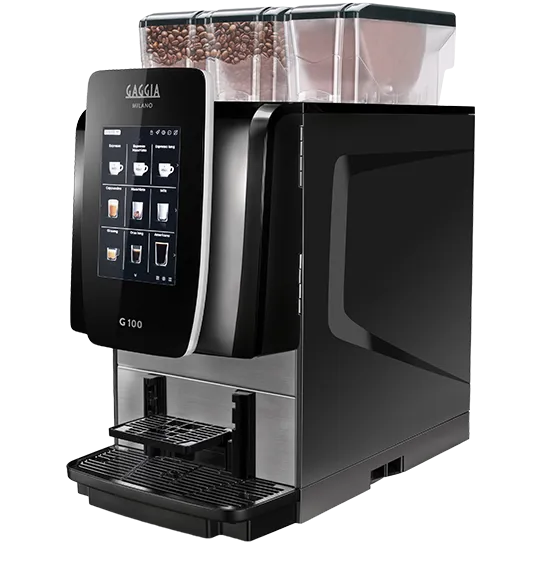 G100 er en kompakt premium kaffemaskin for bedrifter som ønsker høy koppkvalitet, enkel betjening og et plassbesparende format. Maskinen kombinerer hele bønner, 7-tommers touchskjerm og effektiv drift i en løsning som passer godt til kontor, hotell, restaurant og self-service-miljøer.